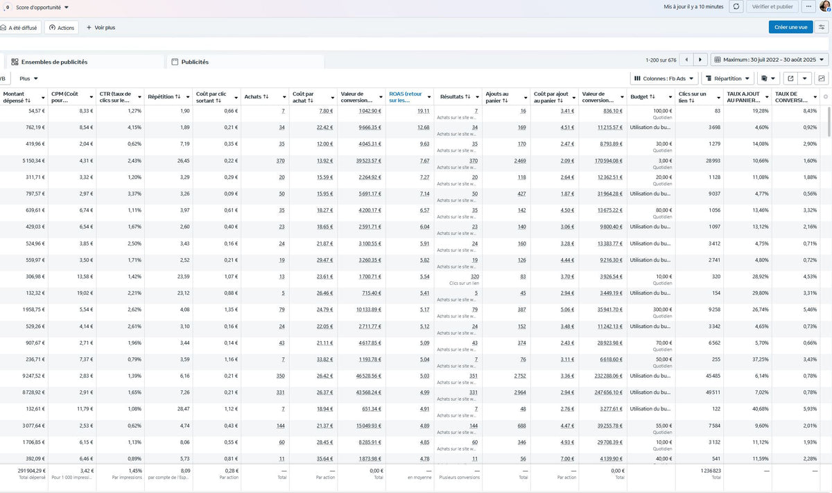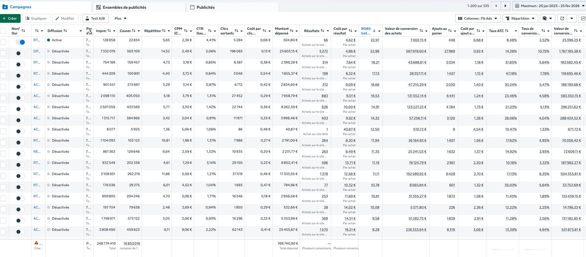 Dès lors que les bons éléments sont identifiés, les apprentissages faits, la structure du compte établi et les résultats stabilisés, nous pouvons augmenter le budget et scaler sur nos campagnes les plus rentables.